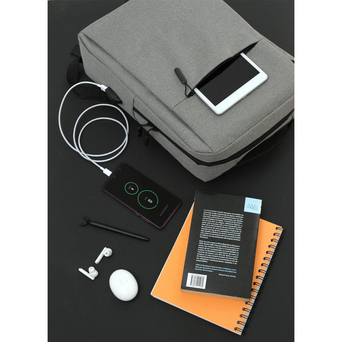 Backpack fabricada en poliéster, incluye un amplio bolsillo frontal con cierre, que proporciona un espacio adicional para almacenar y organizar tus pertenencias, tirantes ajustables que permiten un ajuste personalizado y cómodo para adaptarse a tu altura y preferencias, puerto integrado para carga USB este puerto te permite conectar tu power bank o batería externa dentro de la mochila y cargar tus dispositivos electrónicos.